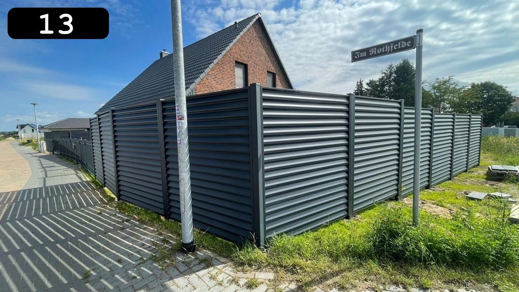 Individuelle Gestaltungsmöglichkeiten: Unser Angebot an Zaunpaneelen bietet eine Vielfalt an Größen und Farben, sodass Sie die perfekte Lösung finden können, die Ihren Bedürfnissen und Anforderungen entspricht. Die Möglichkeit der Pulverbeschichtung in jeder Farbe der RAL-Palette erweitert die Gestaltungsfreiheit zusätzlich. Zubehör und Montage: Um eine optimale Integration der Zaunpaneele in Ihr Projekt zu gewährleisten, bieten wir auch passende Montagepfosten an, die Stabilität und Langlebigkeit Ihres Zaunsystems sicherstellen. Unsere Pfosten sind korrosionsbeständig und in verschiedenen Farben erhältlich, was eine einheitliche Ästhetik gewährleistet. Montagezubehör, einschließlich Verbinder für Frontleisten und Zaunpaneele, wurde für eine einfache Installation und langanhaltende Haltbarkeit konzipiert. Zusätzlich können Sie Ihr Zaunsystem anpassen, indem Sie PVC-Folien wählen, die Privatsphäre und Windschutz bieten, sowie maßgeschneiderte Tore und Türen.